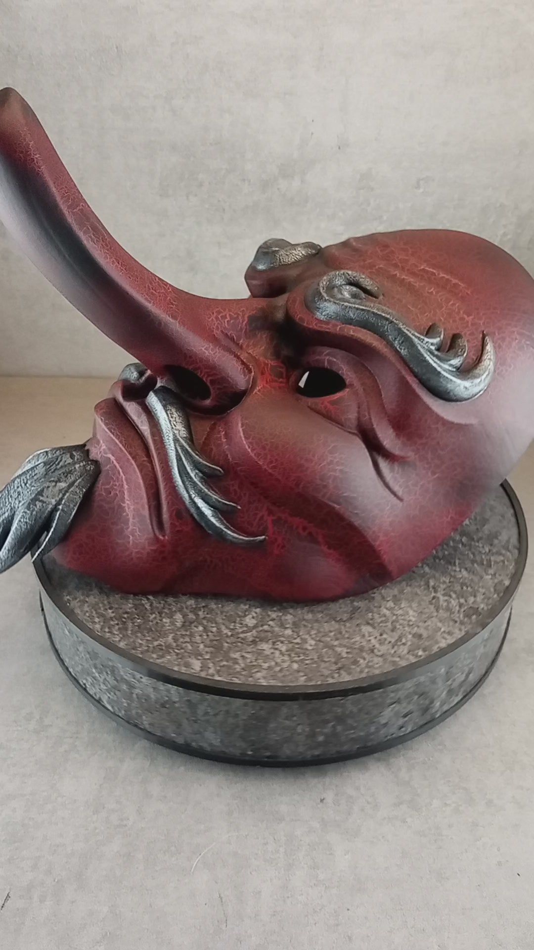The silvery eyebrows, mustache, and beard add a dramatic and aged look, enhancing its supernatural presence. Whether you're a collector of cultural art, a cosplay enthusiast, or decorating a unique space, this mask is a stunning tribute to Japan’s mythical guardian.